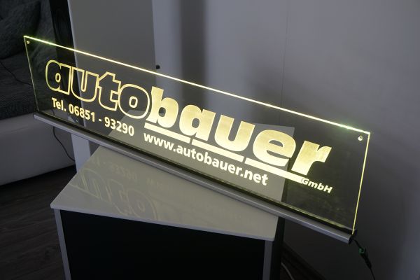 Gravur auf Plexiglas mit LED-Beleuchtung