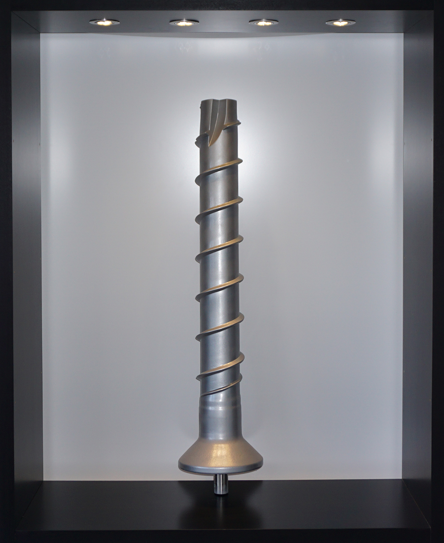 Diese stark vergrößerte Modell eines Schraubdübels der Firma HILTI wurde für das HILTI-Museum in Lichtenstein angefertigt. Das Modell wurde aus dem Formenbau-Kunststoff Necuron gefräst und mit einer Metallic-Effektlackierung versehen.